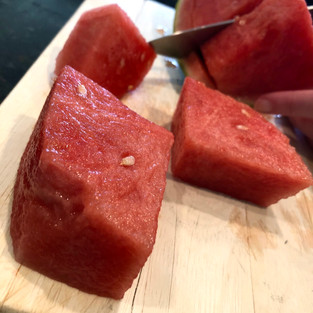 Cut watermelon into large cubes.